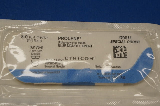 - Ethicon D9611 PROLENE, TG175-8 7mm 1/2c Spatula, Blue Monofilament 6