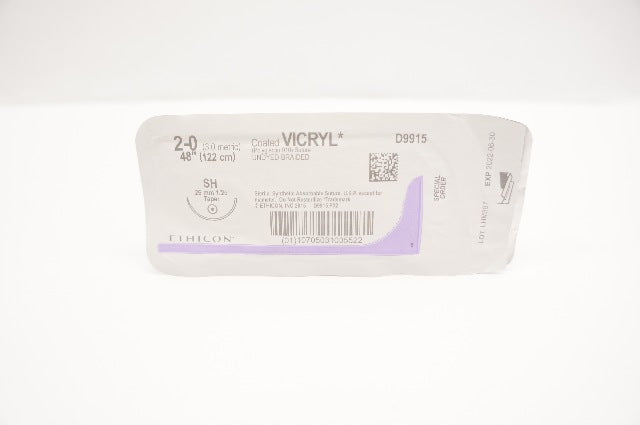 Ethicon D9915 2-0 Coated Vicryl Undyed Braided SH 26mm 1/2c Taper 48inch (x)