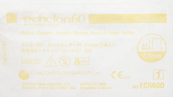 Ethicon ECR60D Echelon60 Endoscopic Linear Cutter Reloads Gold 3.8mm, 6 Rows