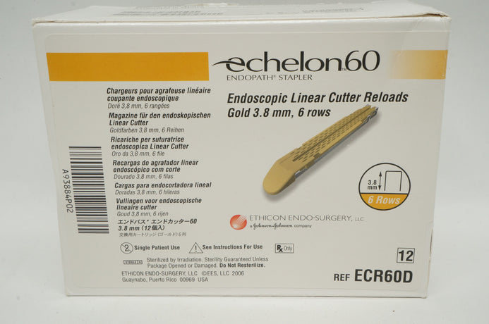 Ethicon ECR60D Echelon60 Endoscopic Linear Cutter Reloads Gold 3.8mm, 6 Rows