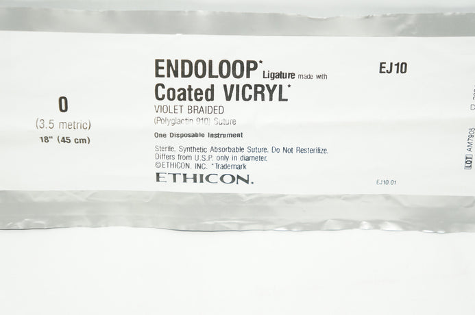 Ethicon EJ10 0 Endoloop Coated VICRYL, Violet Braided Polyglactin 910 Suture 18inch