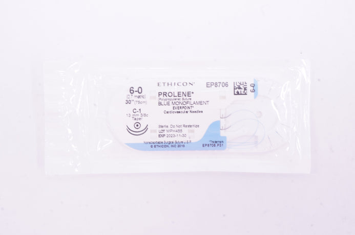 - Ethicon EP8706H 6-0 Prolene C-1 13mm 3/8c Taper 30 inch - Box of 32
