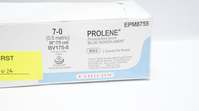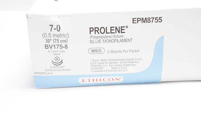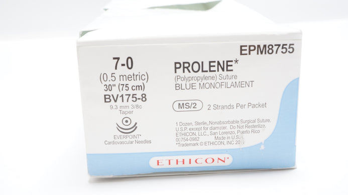 - Ethicon EPM8755 7-0 Prolene Blue 2 x 30inch Stre, 9.3mm BV175-8 Ndle(x)-Box of 9