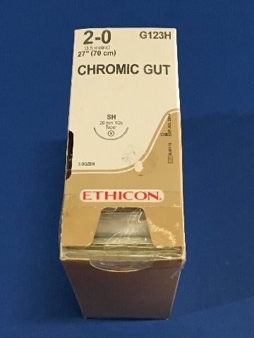 Ethicon G123H Chromic Gut, Taper Point, Absorbable, SH 26mm, Chromic Monofilament 27" 70cm, Size: 2-0