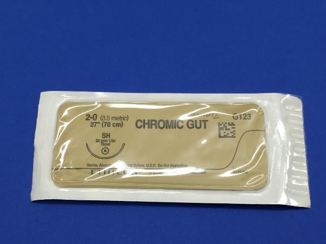 Ethicon G123H Chromic Gut, Taper Point, Absorbable, SH 26mm, Chromic Monofilament 27" 70cm, Size: 2-0