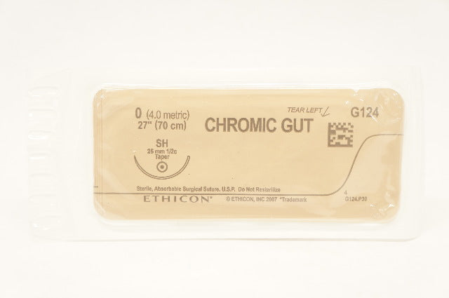 - Ethicon G124 0 Chromic Gut Surgical Stre SH 26mm 1/2 Taper, 27inch