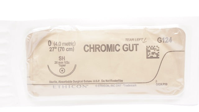 - Ethicon G124 0 Chromic Gut Surgical Stre SH 26mm 1/2 Taper, 27inch (x)