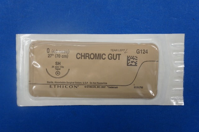 Ethicon G124H 0 CHROMIC GUT, SH 26mm 1/2c Taper, 27 -Box of 36