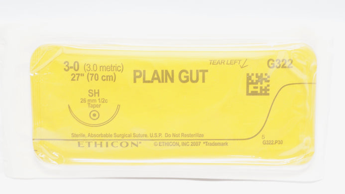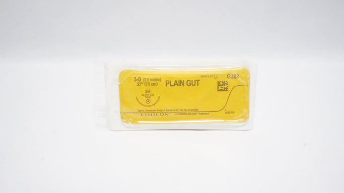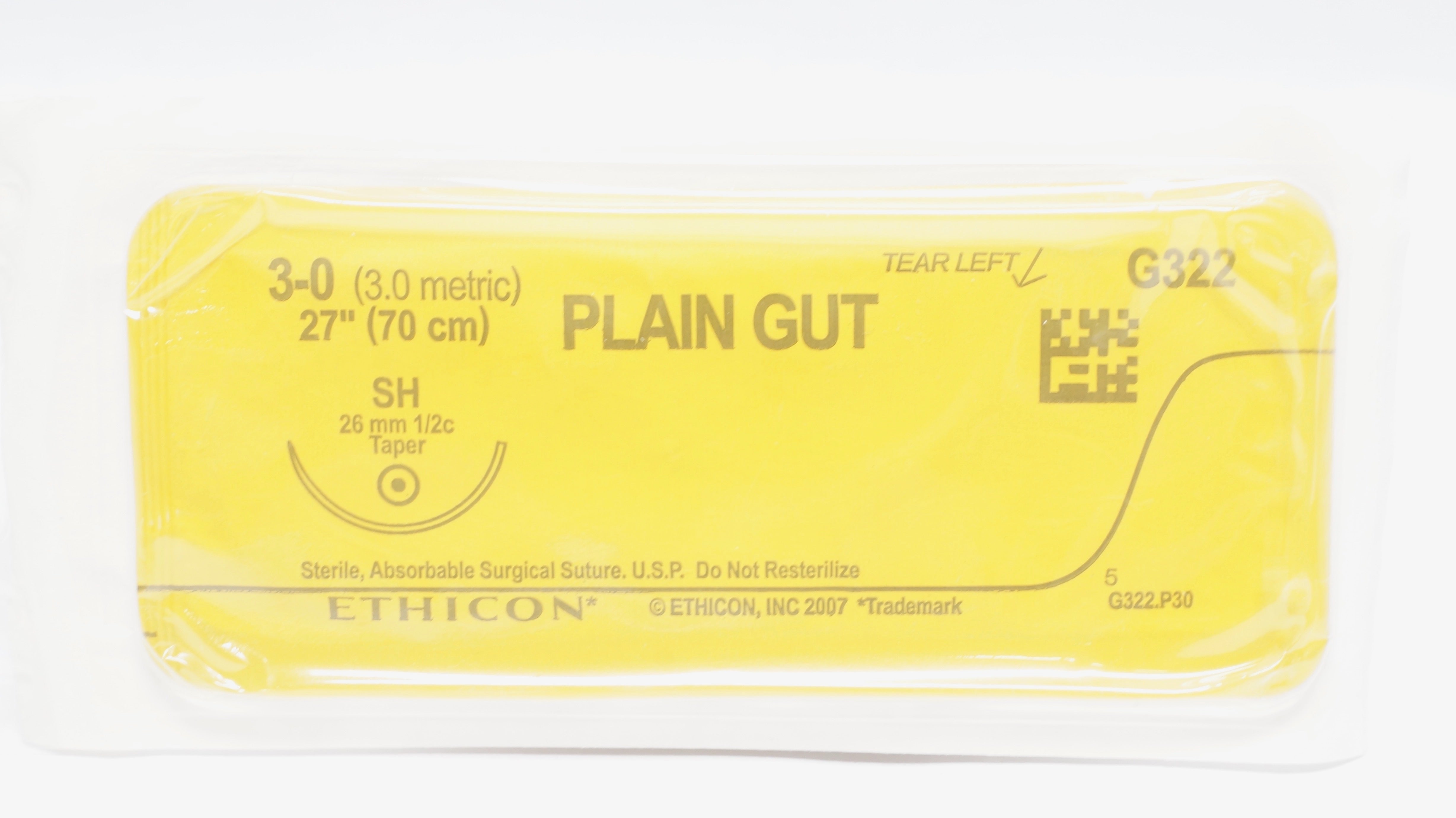 - Ethicon G322 3-0 PLAIN GUT, SH, 26mm 1/2c Taper, 27inch