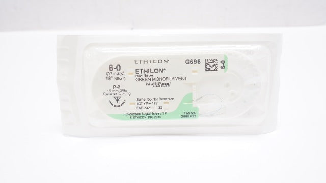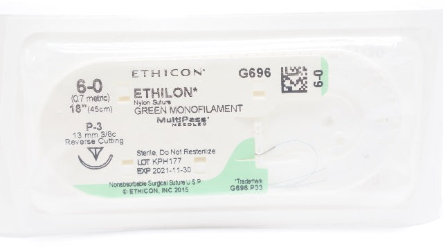 - Ethicon G696 6-0 ETHILON Nylon Stre P-3 13mm 3/8c Reverse Cutting, 18inch (x)