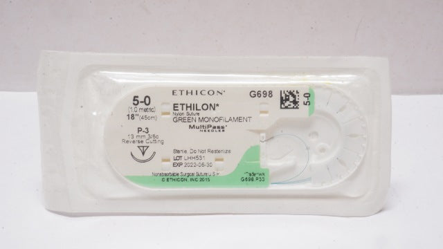 - Ethicon G698 5-0 ETHILON P-3 13mm 3/8c Reverse Cutting 18inch (x)