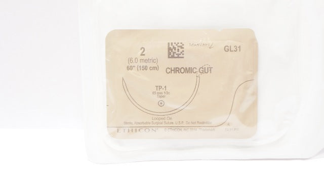 - Ethicon GL31 2 Chromic Gut Surgical Stre TP-1 65mm 1/2c Taper, 60inch (x)