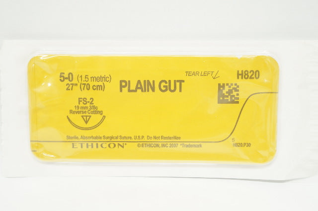 - Ethicon H820 5-0 Plain Gut Surgical Stre FS-2 19mm 3/8c Reverse Cutting, 27inch