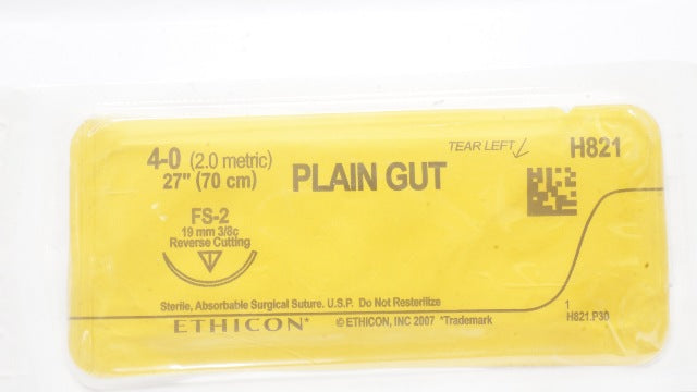 - Ethicon H821 4-0 PLAIN GUT Surgical Stre FS-2 19mm 3/8c ReverseCutting 27In