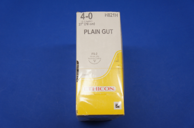 Ethicon H821H Plain Gut, Reverse Cutting, Absorbable, FS-2 19mm, Plain Monofilament 27" 70cm, Size: 4-0