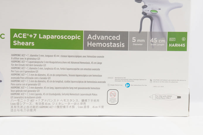 Ethicon HARH45 Ethicon Harmonic Ace + 7 Shears with Advanced Hemostasis 5mm x 45cm