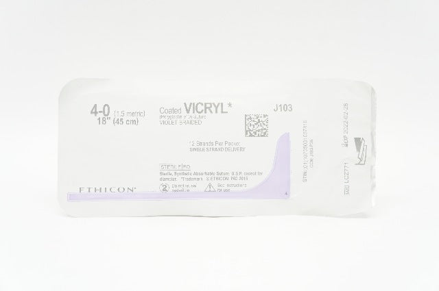 - Ethicon J103 4-0 Coated VICRYL Polyglactin 910 Stre Violet Braided, 18inch (x)