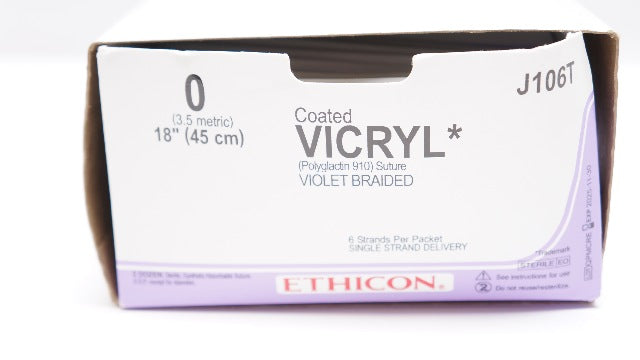 - Ethicon J106T 0 Coated Vicryl Violet Braided, 18inch - Box of 24
