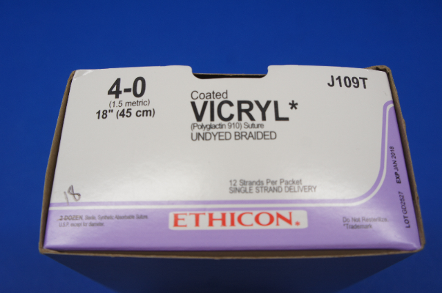 - Ethicon J109T VICRYL, Undyed Braided 12-18 -Box of 18