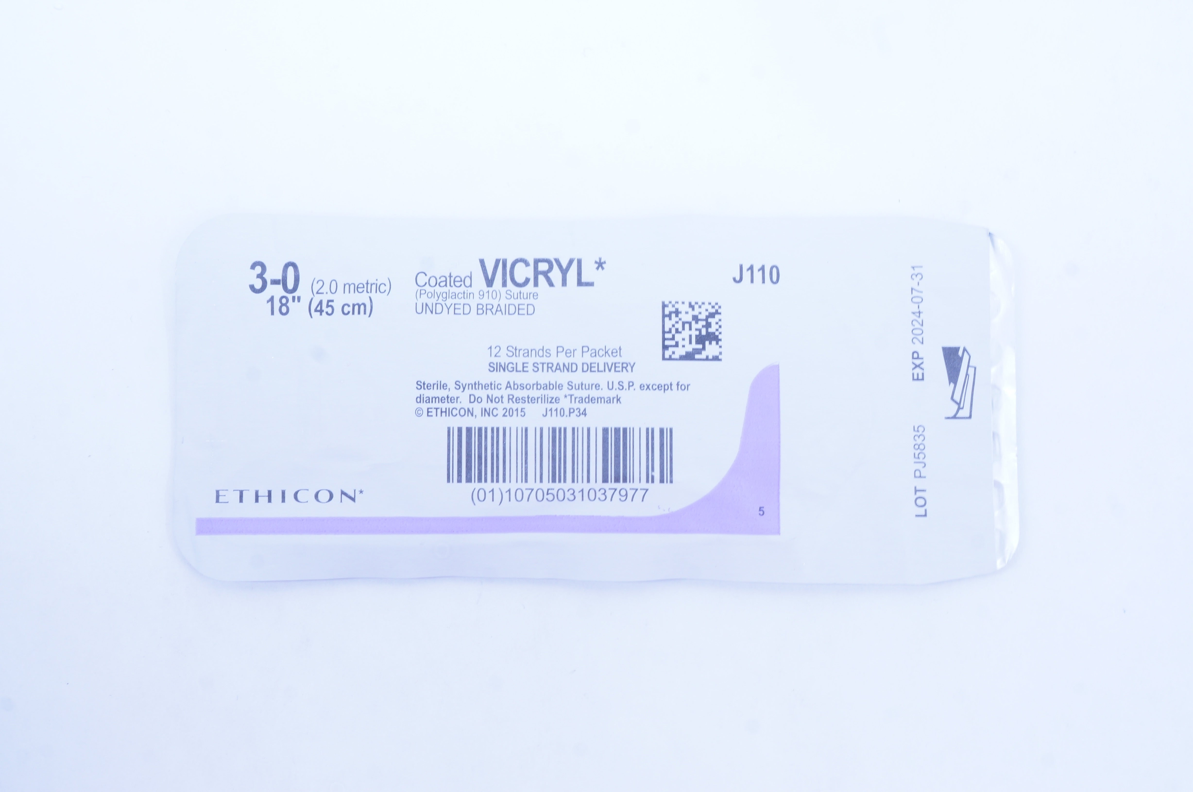 Ethicon J110 3-0 Coated VICRYL (Polyglactin 910) Stre, 18 inch 12 Strands