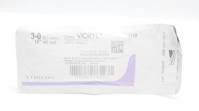 - Ethicon J110 3-0 Coated VICRYL Polyglactin 910 Stre Undyed Braided, 18inch