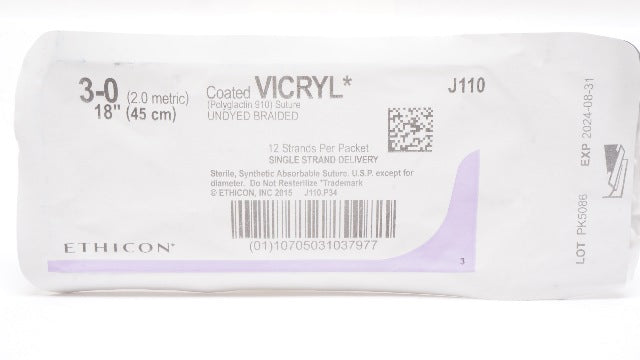 - Ethicon J110 3-0 Coated VICRYL Undyed Braided 18inch