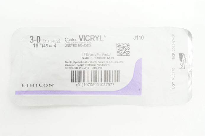 - Ethicon J110 3-0 VICRYL Stre, 18 inch 12 Strands