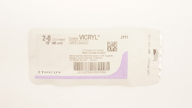 Ethicon J111 2-0 Coated VICRYL (Polyglactin 910) Stre Undyed Braided, 18inch (x)