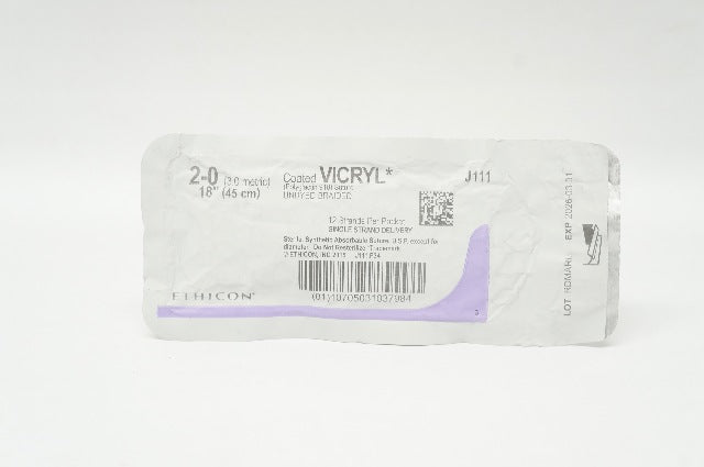 - Ethicon J111 2-0 Coated VICRYL Polyglactin Stre Undyed Braided 18inch