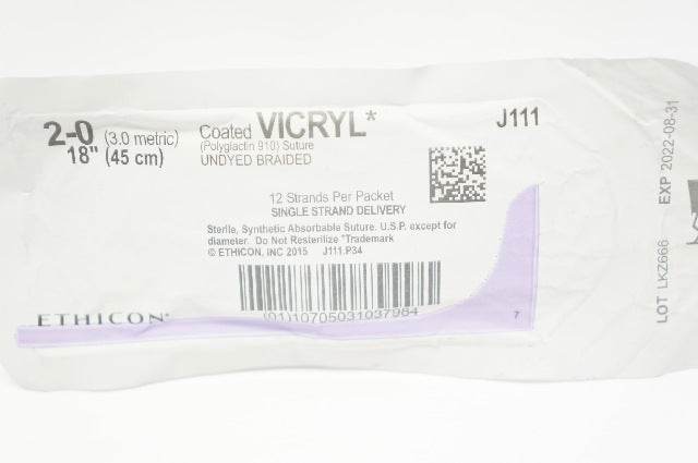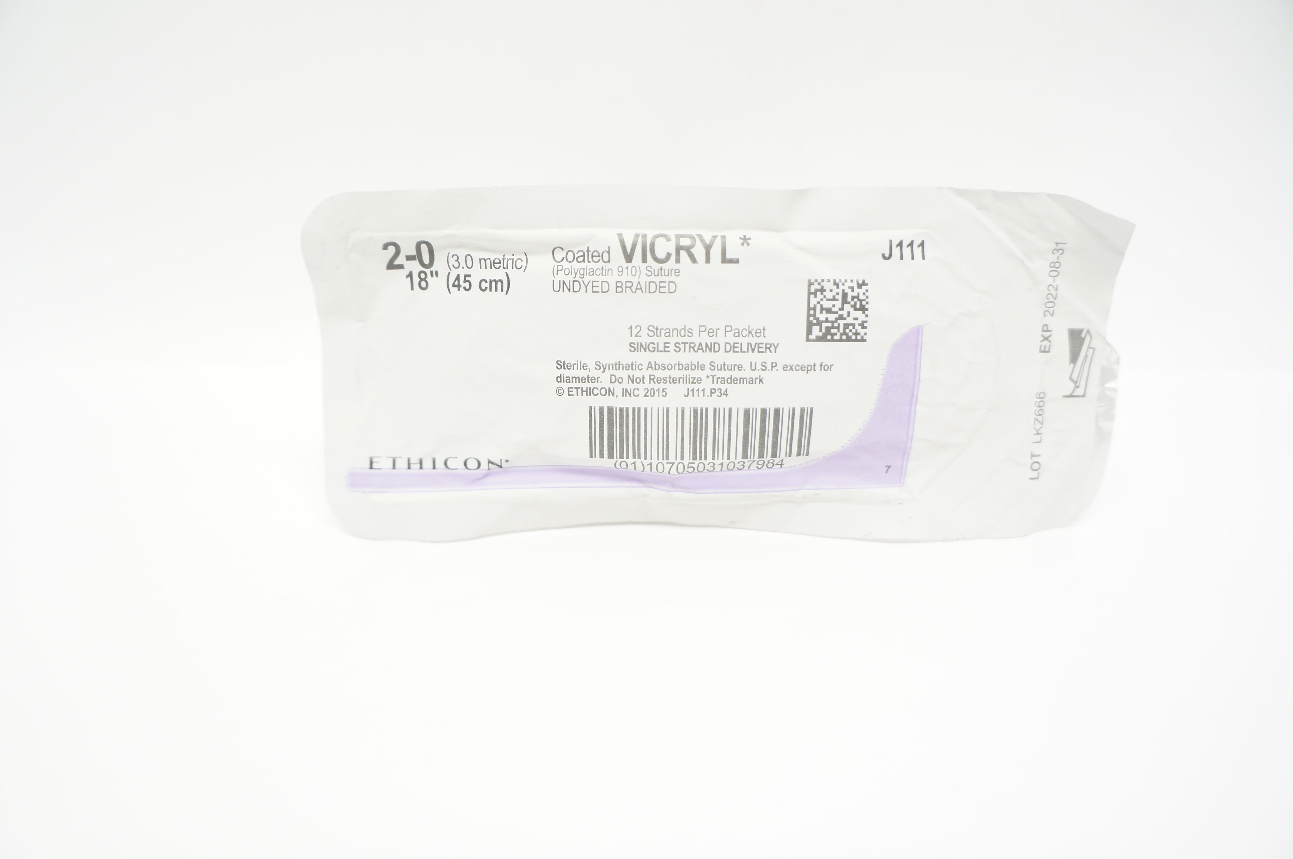 Ethicon J111 2-0 Coated VICRYL, Undyed Braided, 12 Strands,18inch (x)