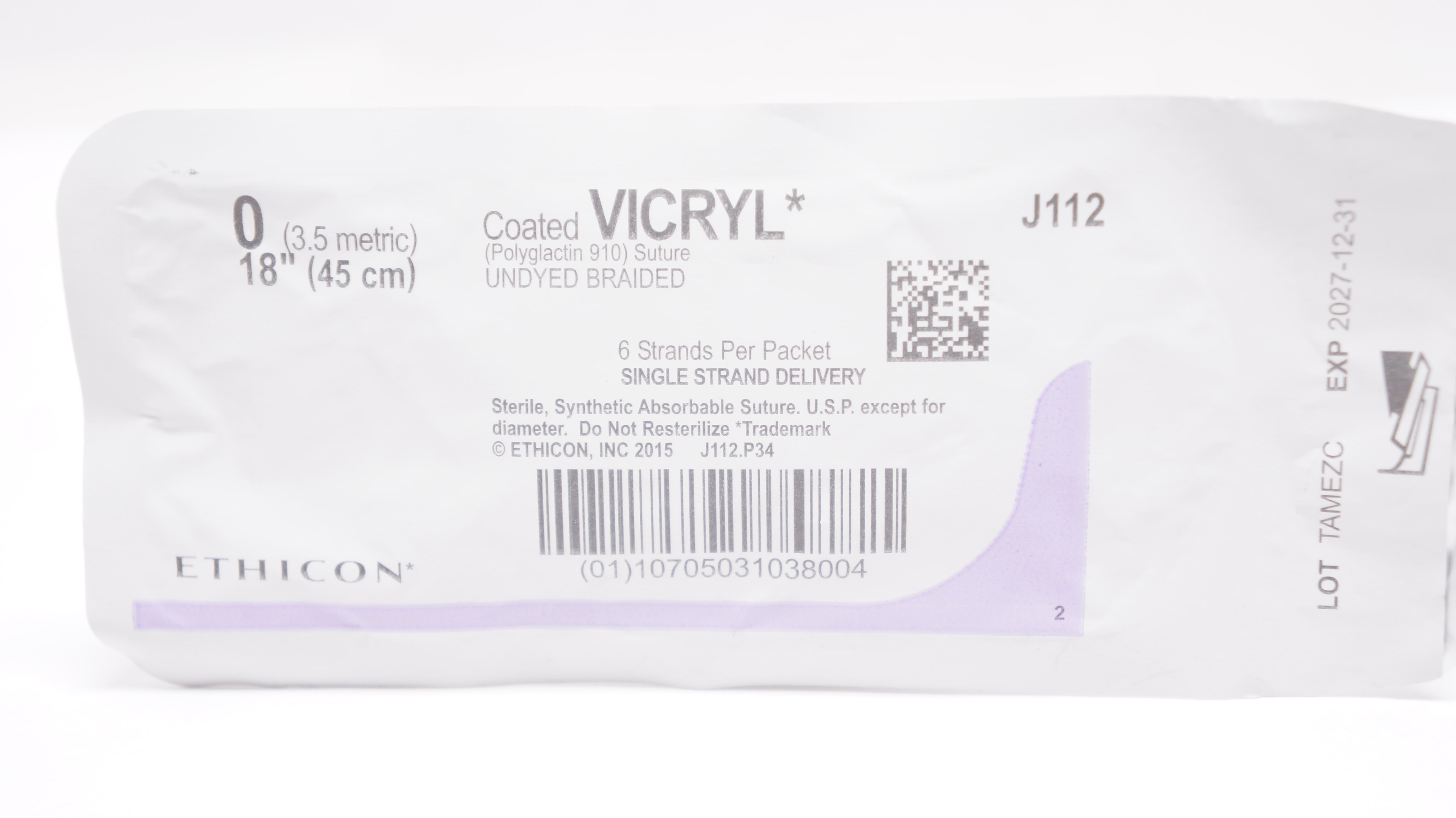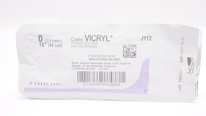 - Ethicon J112 0 Coated VICRYL Stre Undyed Braided 18inch