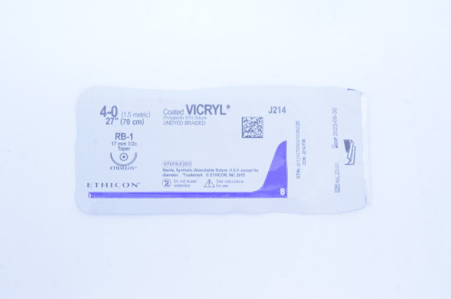 Ethicon J214 4-0 Coated VICRYL RB-1 17mm 1/2c Taper, 27inch