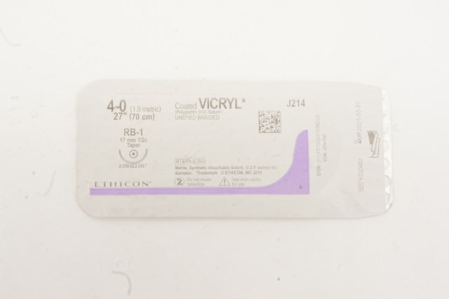 - Ethicon J214 4-0 Coated VICRYL RB-1 17mm 1/2c Taper, 27inch (x)