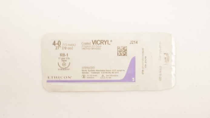 Ethicon J214 4-0 Coated Vicryl Stre Undyed Braided, RB-1 17mm Tapper, 27inch (x)