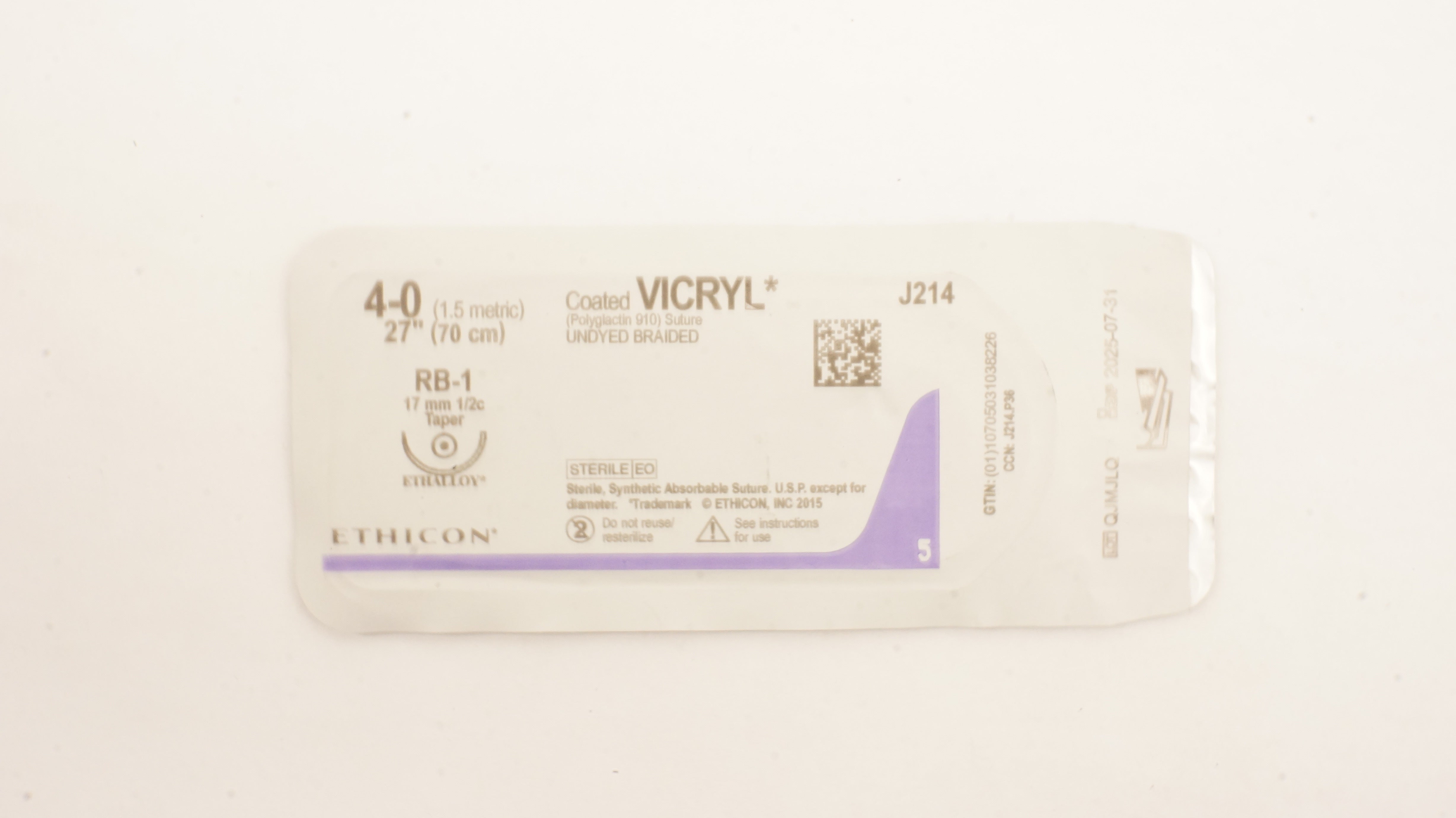 Ethicon J214 4-0 Coated Vicryl Polyglactin 910 Suture Undyed Braided, RB-1 17mm Tapper, 27inch