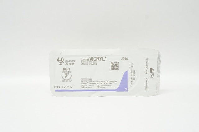 - Ethicon J214 4-0 Coated Vicryl Undyed Braided RB-1 Taper 17mm 1/2c, 27inch