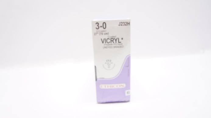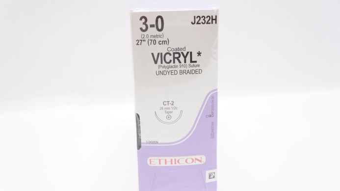 Ethicon J232H 3-0 Vicryl Undyed Braided CT-2 26mm 1/2c Taper 27in (x)- Box of 36