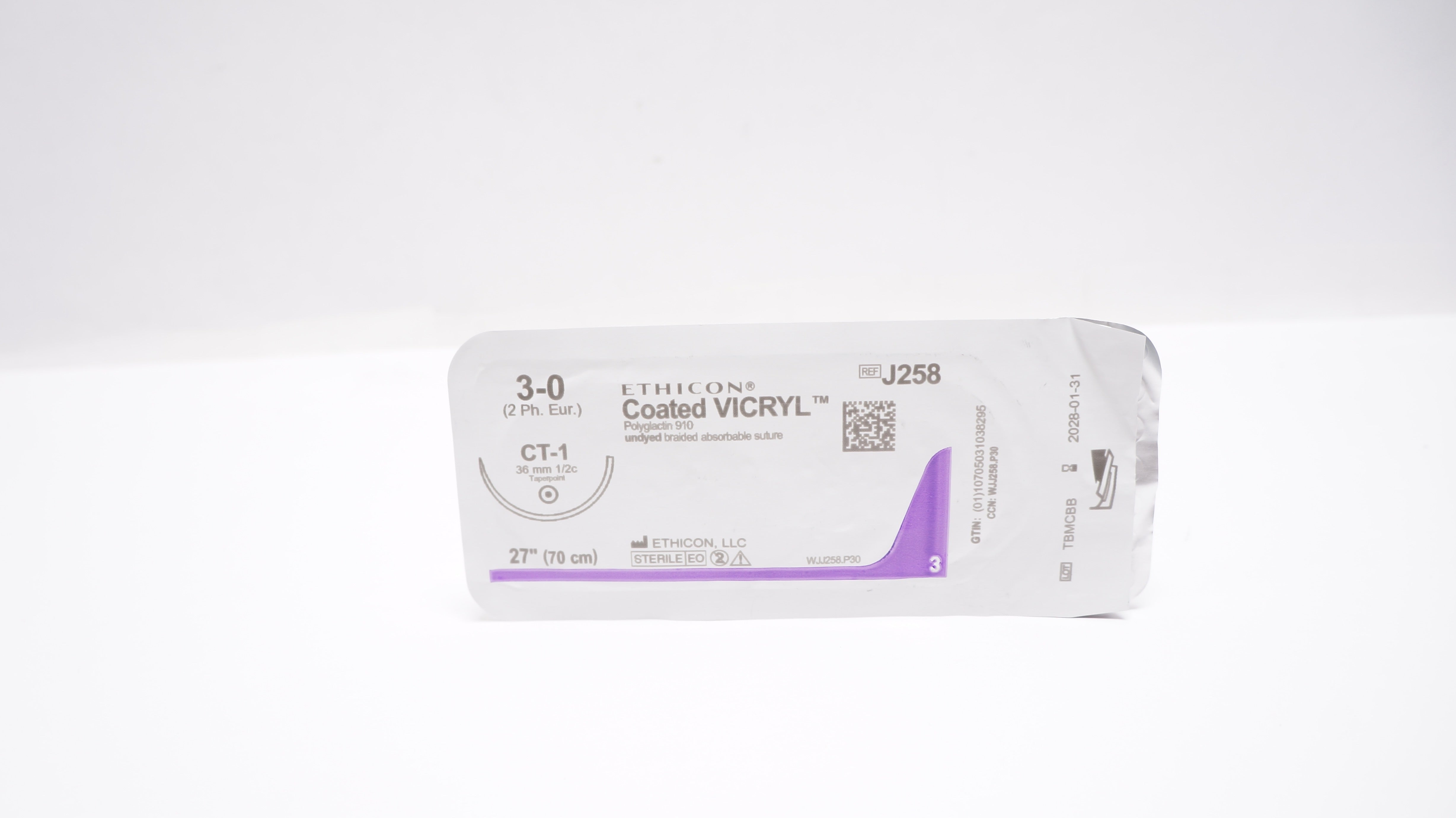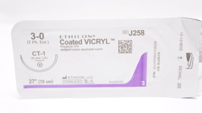 - Ethicon J258 3-0 Coated VICRYL Stre CT-1 36mm 1/2c Taperpoint, 27inch