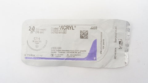 - Ethicon J259 2-0 Coated VICRYL Polyglactin Stre CT-1 36mm 1/2c Taper, 27inch