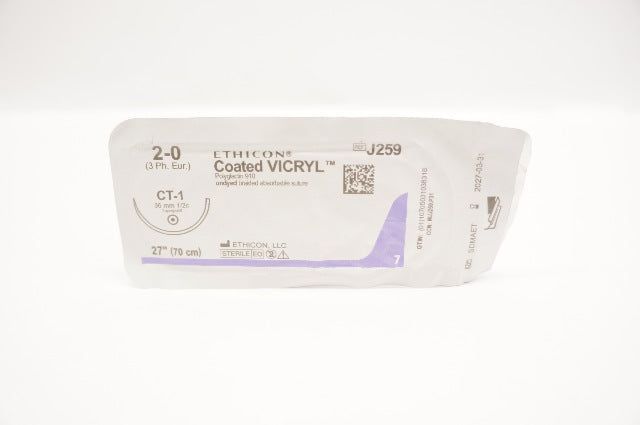 - Ethicon J259 2-0 Coated VICRYL Polyglactin Stre CT-1 36mm 1/2c Taperpoint 27inch