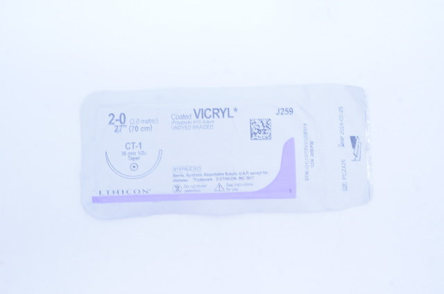 Ethicon J259 2-0 Coated VICRYL (Polyglactin 910) Suture Undyed Braided CT-1 36mm 1/2c Taper, 27 inch