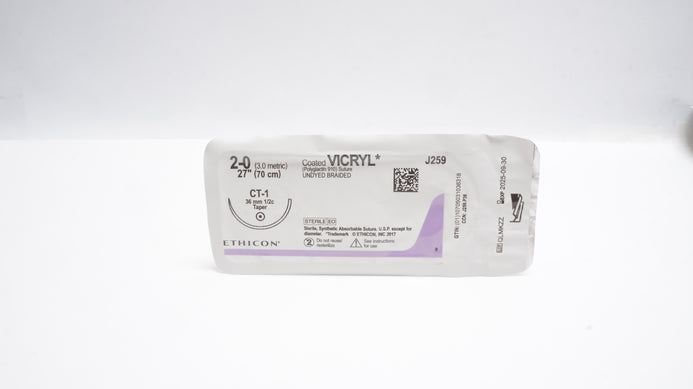 Ethicon J259 2-0 Coated VICRYL Polyglactin 910 Suture Undyed Braided CT-1 36mm 1/2c Taper, 27inch