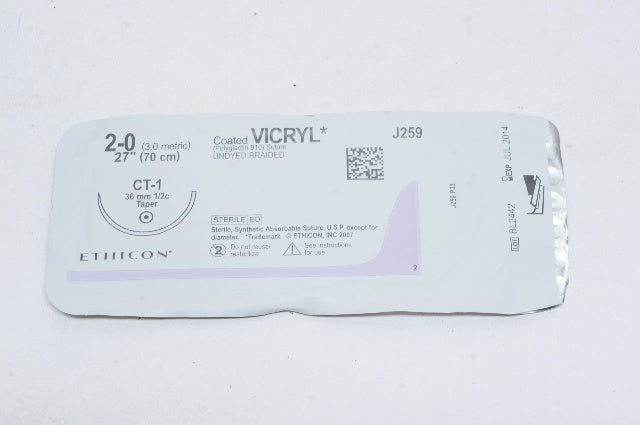 - Ethicon J259 2-0 VICRYL, CT-1, 36mm 1/2c Taper, 27inch (x)