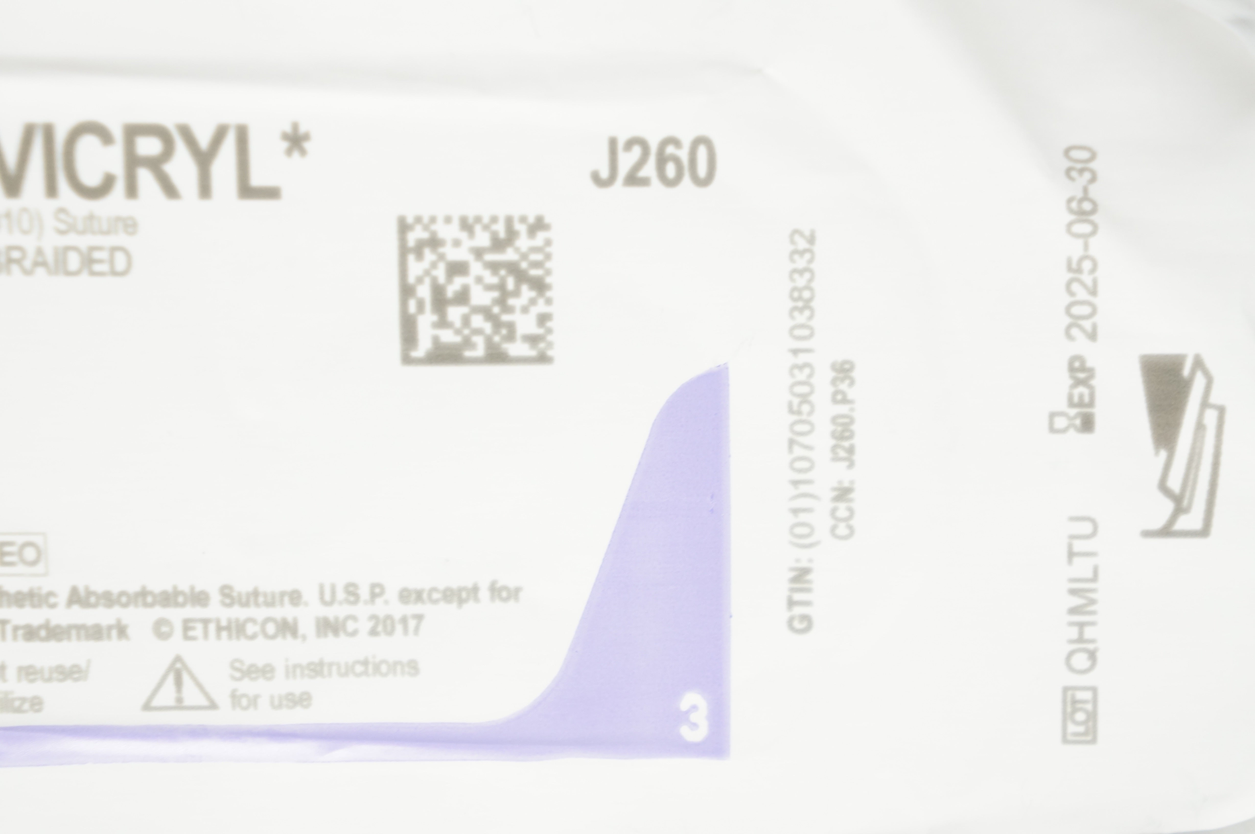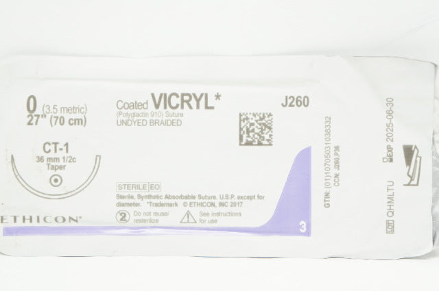 - Ethicon J260 0 Coated VICRYL CT-1, 36mm 1/2c Taper, 27inch
