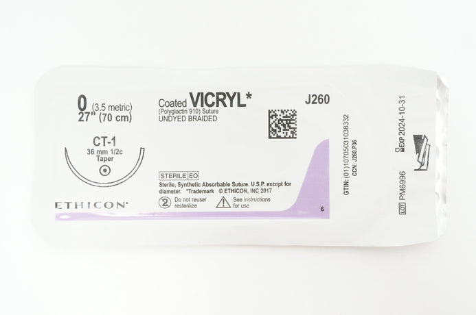 Ethicon J260 0 VICRYL Undyed Braided Stre CT-1 36mm 1/2c Taper, 27 inch