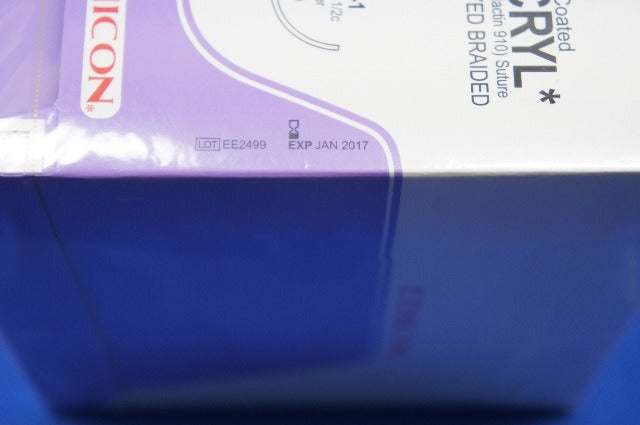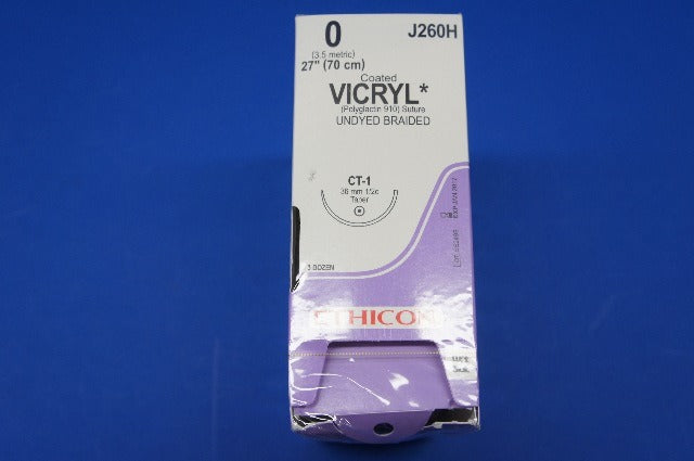 Ethicon J260H VICRYL, Taper Point, Absorbable, CT-1 36mm, Undyed Braided 18", Size: 0