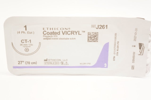 - Ethicon J261 1 Coated VICRYL Braided Stre CT-1 36mm 1/2c Taperpoint, 27inch