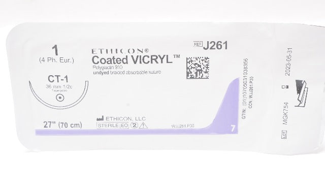 - Ethicon J261 1 Coated VICRYL Braided Stre, CT-1 36mm 1/2c Taperpoint, 27inch (x)