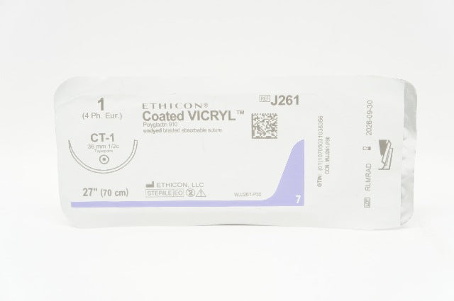 - Ethicon J261 1 Coated VICRYL Polyglactin Stre CT-1 36mm 1/2c Taperpoint, 27inch