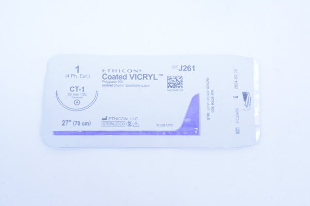 Ethicon J261 1 Coated VICRYL Polyglactin 910 Undyed Braided Absorbable Suture CT-1 36mm 1/2c Taperpoint 27inch